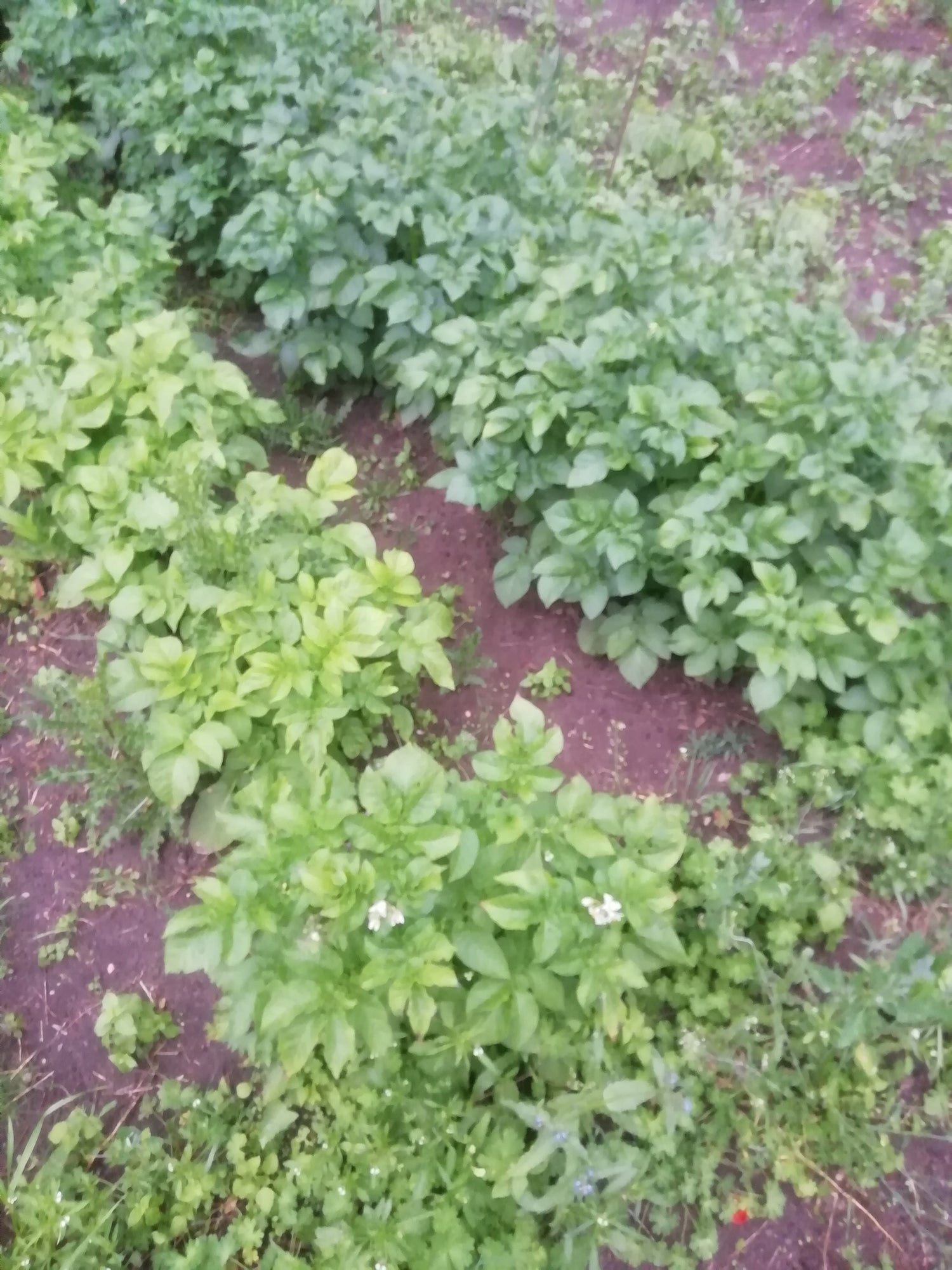 jeg den første plante, hvor sættekartoflen var lagt oven på ulden. Den gav så